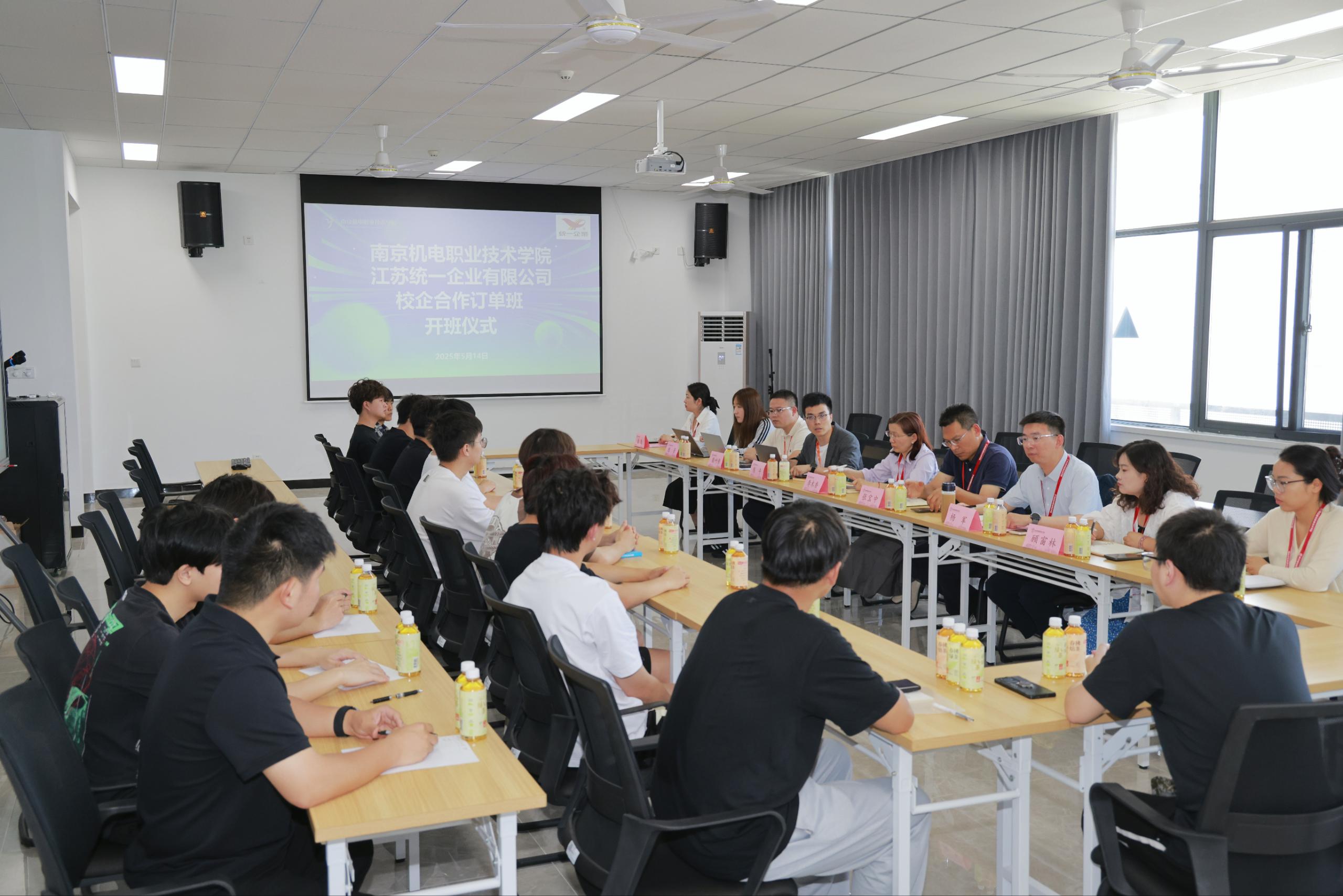 5月14日下午,星空网页版登录入口与江苏统一企业有限公司校企合作订单班开班仪式在学校自动化工程系会议室举行。统一企业(中国)投资有限公司人资部课长陈平、江苏统一企业有限公司制瓶制造课长柴叶倩、人资专员陈芳、星空网页版登录入口科研及校企合作处处长李木香、学工处处长张宝中、自动化工程系党支部副书记杨军、学工处就(创)指导服务中心主任顾窗林出席仪式,“统一订单班”班主任、自动化工程系专职辅导员王飞燕及订单班全体学生参加。仪式由自动化工程系就业干事俞青主持。