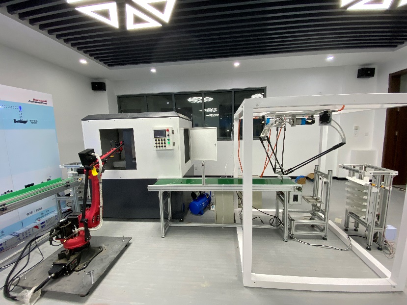 (2)罗克韦尔智能制造协同创新中心、罗克韦尔智能制造装备创新中心:包括可编程控制器、工业机器人、Delta大型并联机器人、小型串并联机器人、三轴雕刻机、风冷温度过程控制装置、物联网工程设计套件、物联网通信与组网套件、伺服系统、总线与集成测试装置、视觉识别与机器学习装置等,为师生进行罗克韦尔PLC综合项目实训、中国工业智能挑战赛、毕业设计等教科研活动提供平台支持。