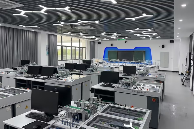 (3)电气自动化综合实训室:可开展多项实践活动,包括电气控制系统设计、安装与调试,完成PLC编程与应用训练,提升自动化控制技能;开展组态软件应用学习,实现人机界面开发与监控;支持运动控制系统实验,助力掌握电机控制技术;还可为相关课程教学提供实操平台,加深学生对理论知识的理解,同时为教师科研和企业员工培训提供有力支撑。