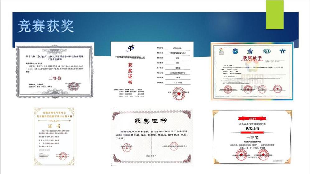 荣获第十一届、第十二届中国工业智能挑战赛“高职组”全国特等奖、第十一届中国工业智能挑战赛全国一等奖。2024年9月24日《今日高淳》报纸B1版整版报道我校自动化工程系学子荣获中国工业智能挑战赛特等奖,其中《高淳发布》已于2024年9月12日刊载相关新闻。此外,还荣获江苏省教学能力大赛二等奖1项;江苏省高校微课教学比赛一等奖1项、三等奖1项;“西门子”杯中国智能制造挑战赛全国一等奖1项、二等奖3项、三等奖3项;“江苏工匠”杯智能化系统集成应用工业视觉应用与维护赛项一等奖3项;第三届全国高校电气类专业青年教师实践教学设计创新大赛全国一等奖1项;江苏省职业院校技能大赛工业网络智能控制与维护赛项二等奖1项、三等奖2项;江苏省职业院校技能大赛现代电气控制安装与调试赛项二等奖1项,三等奖2项;全国仿真创新应用大赛一等奖1项,三等奖2项。